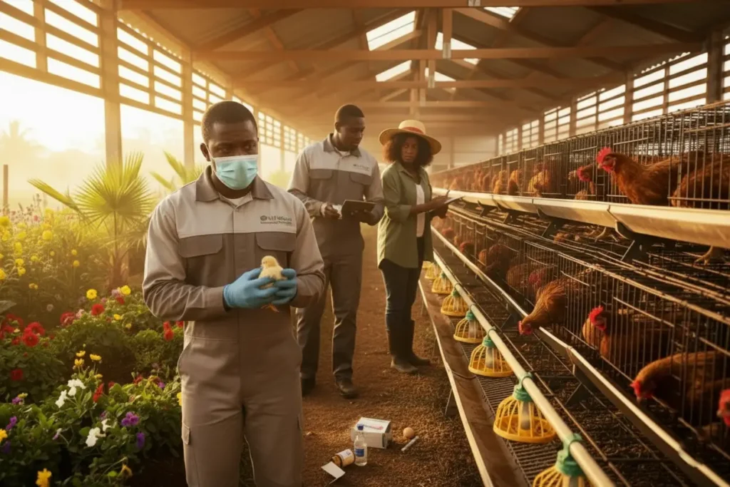 | Systemized Health Sequencing | Scheduled | Exact timelines for vaccinations (ND, Gumboro) and deworming (Weeks 9, 14, then every 6–8 weeks during lay), always paired with a 24-hour multivitamin/electrolyte protocol to control stress. |