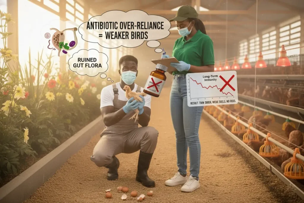 Over-reliance on antibiotics for everything ruins the bird’s natural gut flora, reduces long-term health, and makes your birds weaker against actual outbreaks.